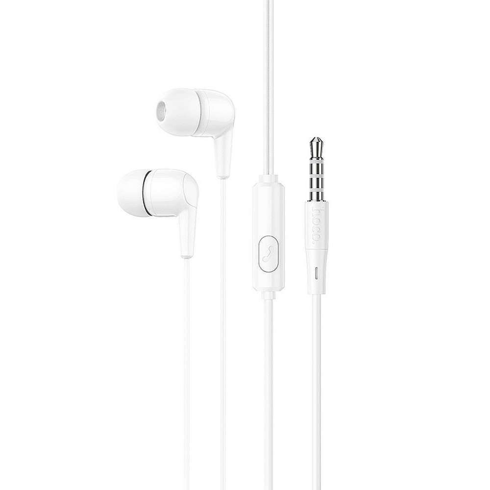 HOCO M97 - fehér, vezetékes stereo headset, audio csatlakozóval. Univerzális fülhallgató. Tökéletes mindennapi használatra. Lehetővé teszi, hogy bárhol élvezhesd kedvenc zenéidet és mikrofonnal felszerelt a hívások kezdeményezéséhez. A multifunkcionális zene- vagy hívásgomb lehetővé teszi a lejátszott hang egyszerű vezérlését egy kézzel, a beépített mikrofon pedig jó minőségű beszélgetéseket biztosít. A fejhallgató univerzális 3,5 mm-es audiocsatlakozóval van felszerelve. Kompakt kialakításának köszönhetően könnyen tárolható. Kábelhossz: 1,2 m.