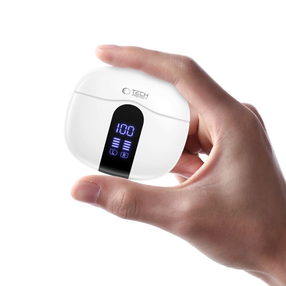 Headset Tech-Protect Ultraboost TWS Core G2 - fehér bluetooth headset, töltő tokkal