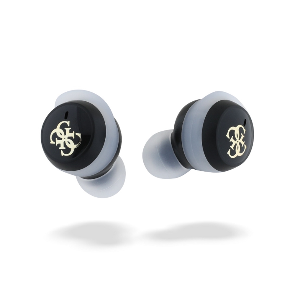 Headsett: Guess 4G Logo Mini TWS - fekete vezeték nélküli stereo bluetooth headset, töltőtokkal