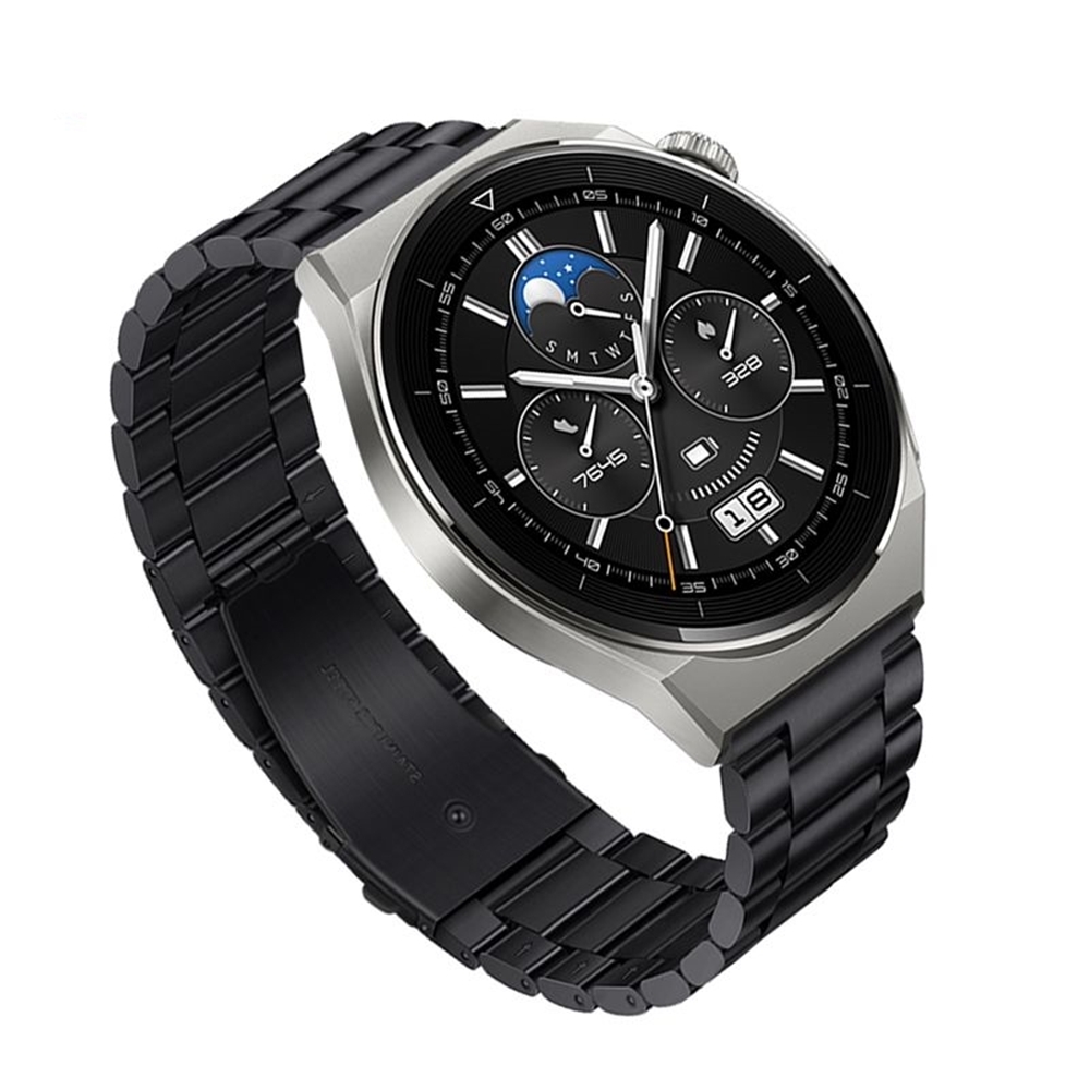 Huawei Watch GT / GT2 / GT2 Pro (46 mm) okosóra szíj - F- Design FS06 - fekete fém szíj (szíj szélesség: 22 mm)
