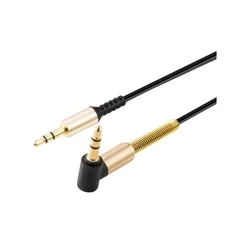 Univerzális 3,5 mm-es jack-jack audio AUX kábel, 90 fokban elfordított csatlakozóval, 1 méter hosszú. A kábel kiváló minőségű anyagokból készült, ami sok készülékhez kompatibilissé teszi, és garantálja a zavartalan hangjel továbbítását. Kompatibilis a 3,5 mm-es Jack bemenettel rendelkező eszközökkel.