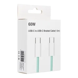 Univerzális - Type-C (USB-C) / Type-C (USB-C) zöld szövet kábel 1,5m, 60W. Gyorstöltési funkció 60W-ig - támogatja a Power Delivery 60W-ot, a Quick Charge 3.0-t és más protokollokat, amelyek lerövidítik az eszközök töltési idejét (gyorstöltési funkcióval rendelkező töltő szükséges), és lehetővé teszi az adatátvitelt. Sokoldalúság - 1,5 m-es kábel A Type-C (USB-C) csatlakozónak köszönhetően sok eszközre illeszkedik, a TPE anyag pedig biztosítja a szilárdságot és a tartósságot.
