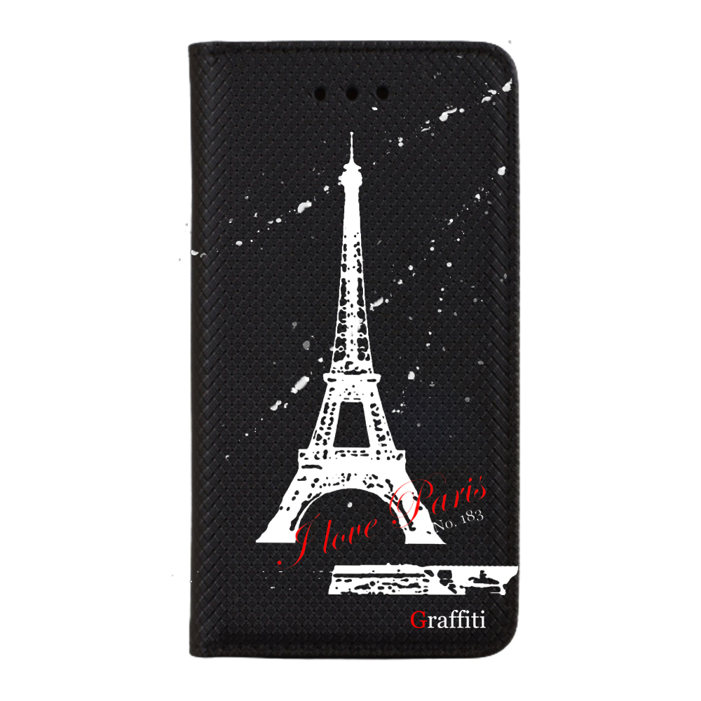 Eredeti Graffiti Kitámasztható könyvtok, pénz- és bankkártyatartóval. Fekete könyvtok egyedi sorszámozott mintával a Graffiti-Brand által tervezett black&white stílusban, mely tökéletesen illeszkedik a készülék csatlakozóihoz, gombjaihoz.