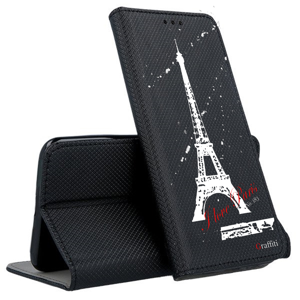 Eredeti Graffiti Kitámasztható könyvtok, pénz- és bankkártyatartóval. Fekete könyvtok egyedi sorszámozott mintával a Graffiti-Brand által tervezett black&white stílusban, mely tökéletesen illeszkedik a készülék csatlakozóihoz, gombjaihoz.