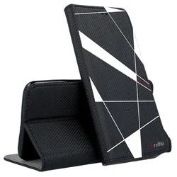 Eredeti Graffiti Kitámasztható könyvtok, pénz- és bankkártyatartóval. Fekete könyvtok egyedi sorszámozott mintával a Graffiti-Brand által tervezett black&white stílusban, mely tökéletesen illeszkedik a készülék csatlakozóihoz, gombjaihoz.