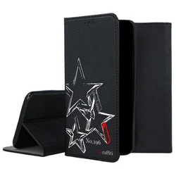 Eredeti Graffiti Kitámasztható könyvtok, pénz- és bankkártyatartóval. Fekete könyvtok egyedi sorszámozott mintával a Graffiti-Brand által tervezett black&white stílusban, mely tökéletesen illeszkedik a készülék csatlakozóihoz, gombjaihoz.