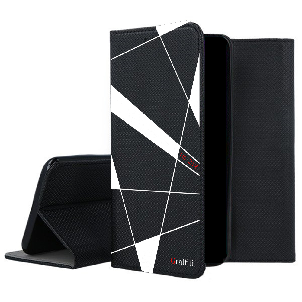 Eredeti Graffiti Kitámasztható könyvtok, pénz- és bankkártyatartóval. Fekete könyvtok egyedi sorszámozott mintával a Graffiti-Brand által tervezett black&white stílusban, mely tökéletesen illeszkedik a készülék csatlakozóihoz, gombjaihoz.