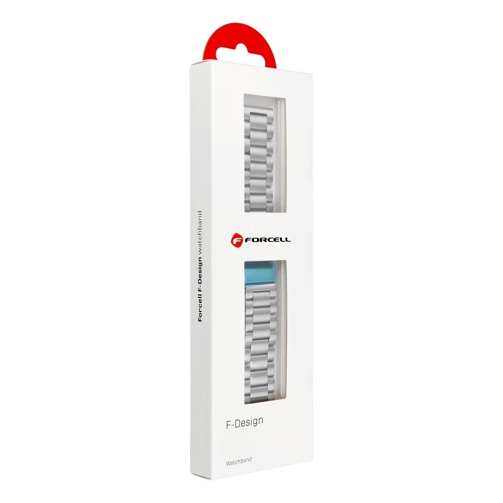 A Forcell az okosóra kiegészítők márkája, amely a stílusra és a használat kényelmére helyezi a hangsúlyt, ezért termékei ideális választás azok számára, akik értékelik a magas minőséget és az időtlen dizájnt. A Forcell F-Design szíjat 20 mm-es szíjszélességgel rendelkező okosórákhoz készítették. Kiváló minőségű rozsdamentes acélból készült, egész napos viselési kényelmet biztosít.