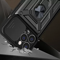 Telefontok Honor X6 - Camshield - fekete szilikon tok, kitámasztó ujjgyűrűvel, csúsztatható kameravédővel