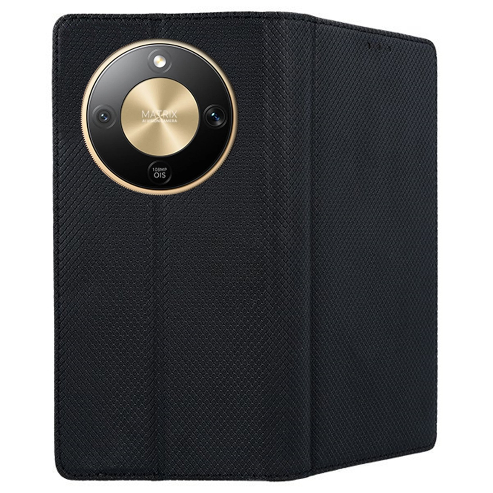 Telefontok Honor Magic8 Lite - fekete mágneses szilikon keretes könyvtok