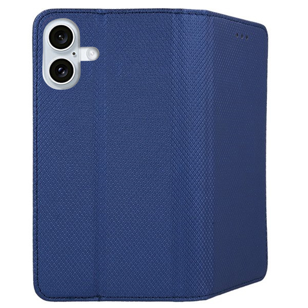 iPhone 16 telefontok - kék mágneses átlátszó szilikon keretes könyvtok
