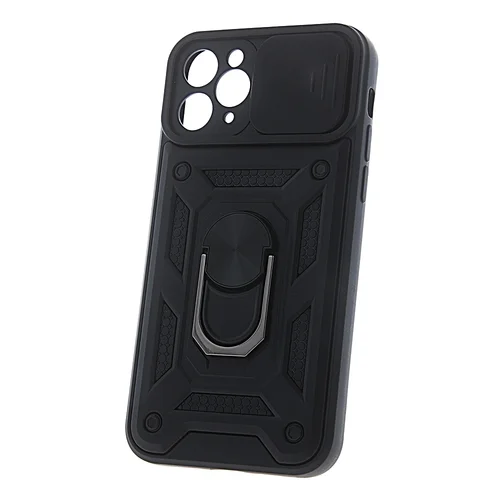 iPhone 16 Pro Max telefontok - Camshield - fekete szilikon tok, kitámasztó ujjgyűrűvel, csúsztatható kameravédővel