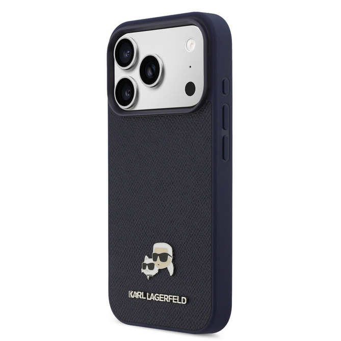 Telefontok iPhone 17 Pro Max - Karl Lagerfeld Saffiano Leather - K&C Head Logo - MagSafe kompatibilis kék hátlap tok