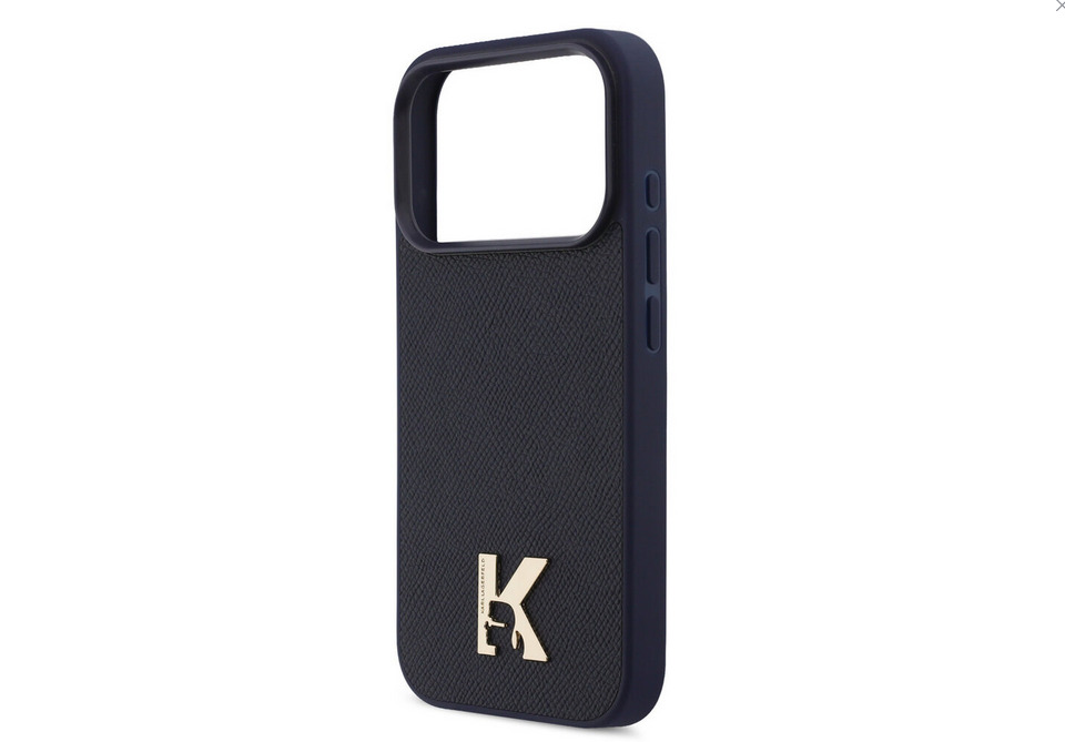 Telefontok iPhone 17 Pro Max - Karl Lagerfeld Saffiano Leather - Metal K & Karl Logo - MagSafe kompatibilis sötétkék hátlap tok