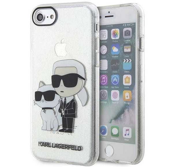 Telefontok iPhone 7 - Karl Lagerfeld Glitter Karl&Choupette átlátszó csillámos hátlap tok