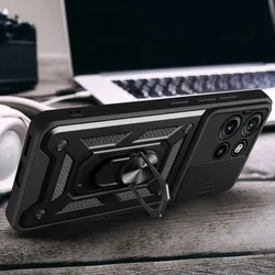 Telefontok Motorola Edge 60 Neo 5G - Camshield - fekete szilikon tok, kitámasztó ujjgyűrűvel, csúsztatható kameravédővel