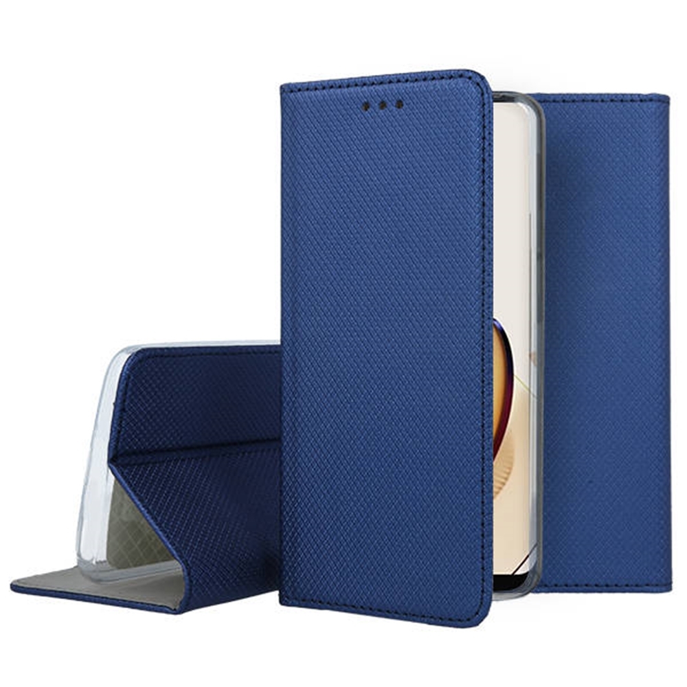 Telefontok Motorola Moto E14 - kék mágneses szilikon keretes könyvtok