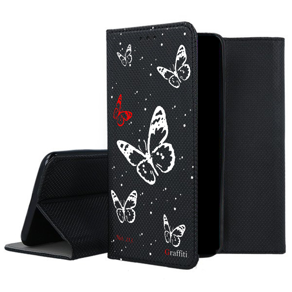 Eredeti Graffiti Kitámasztható könyvtok, pénz- és bankkártyatartóval. Fekete könyvtok egyedi sorszámozott mintával a Graffiti-Brand által tervezett black&white stílusban, mely tökéletesen illeszkedik a készülék csatlakozóihoz, gombjaihoz.