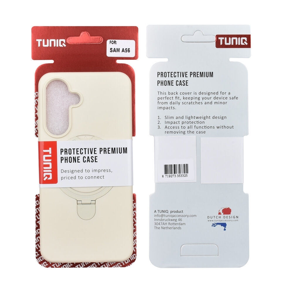 Telefontok Samsung Galaxy A36 5G -TUNIQ - MagSafe kompatibilis csontfehér hátlap tok, kitámasztható gyűrűvel