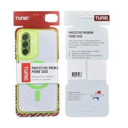 Telefontok Samsung Galaxy A56 5G - TUNIQ - MagSafe kompatibilis átlátszó/zöld csillámos műanyag hátlap tok, szilikon kerettel