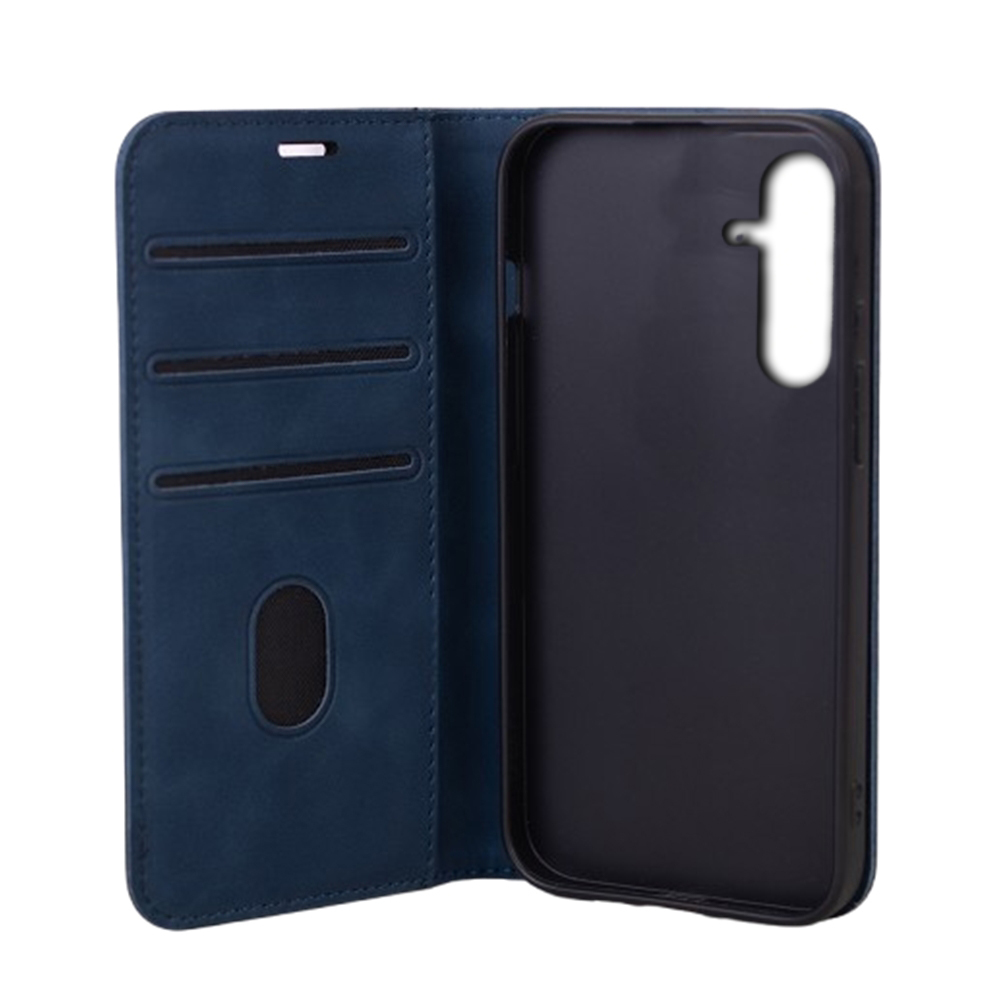 Telefontok Samsung Galaxy S25 FE - Suede - kék mágneses szilikon keretes könyvtok