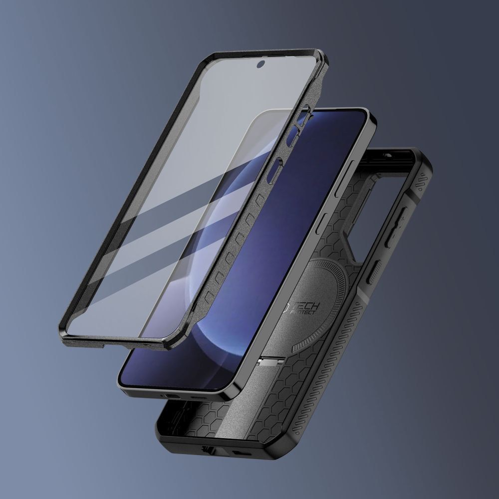 Tech-Protect Kevlar MAGSAFE, egy ütésálló tok, mely teljes körű védelmet nyújt a készüléknek. A fejlett hibrid konstrukció gondoskodik a tökéletes illeszkedésről. A tok kétrészes kialakítása PC bevonattal és ütésálló TPU résszel biztosítja a hatékony védelmet. A sarkokban található kiegészítő megerősítések, vagyis légpárnák, hatékonyan csökkentik az esetleges ütéseket. A Kevlar Pro egyéb jellemzői közé tartoznak a megemelt élek, amelyek védelmet nyújtanak a kamera és a kijelző számára, a csúszásmentes felület, valamint a vezeték nélküli töltés lehetősége (feltéve, ha a készülék támogatja ezt a funkciót). A tok a MagSafe vezeték nélküli technológiával kompatibilis gyűrűvel rendelkezik. A mágneses gyűrű maximális töltési teljesítményt és gyors és egyszerű csatlakozást biztosít minden MagSafe-kompatibilis tartozékhoz. A könnyen használható kitámasztó egyaránt funkcionál állványként, lehetővé téve a telefon függőleges és vízszintes elhelyezését, és ujjfogóként, hogy biztonságosan tarthassa a kezében a telefont. A tok szorosan illeszkedik a telefon készülékéhez, az összes gombhoz és vonalvezetéshez, így a telefon továbbra is könnyű és vékony marad a tok használata mellett.