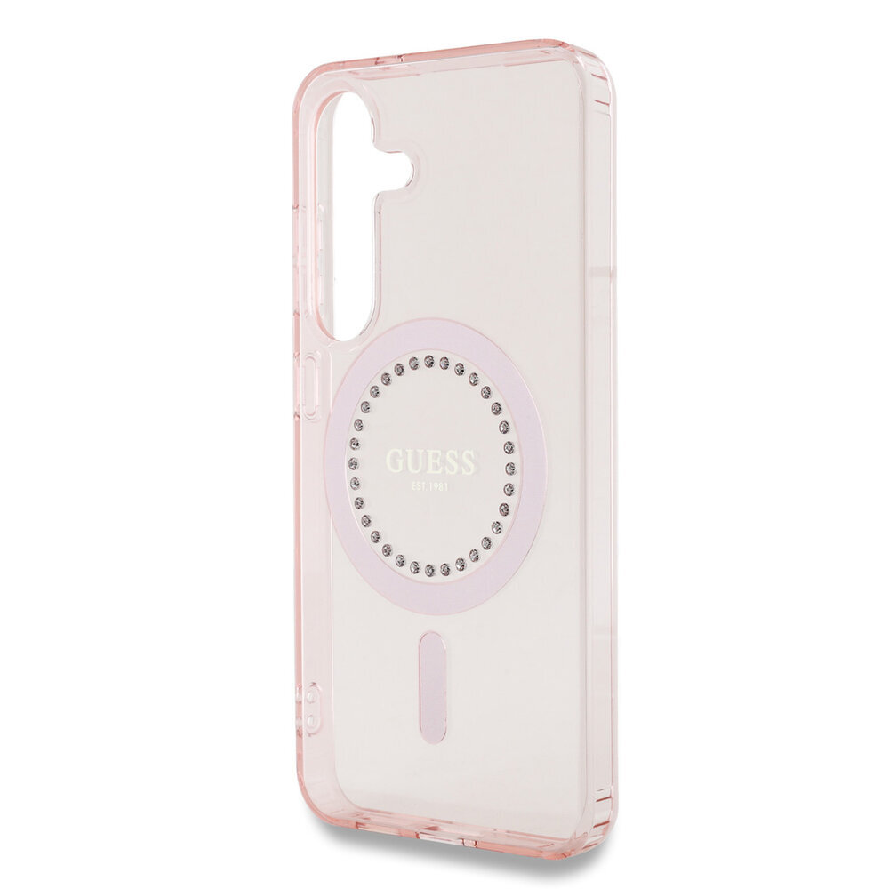 Samsung Galaxy S25 - Guess Classic Logo strasszokkal - pink átlátszó MagSafe kompatibilis hátlap tok