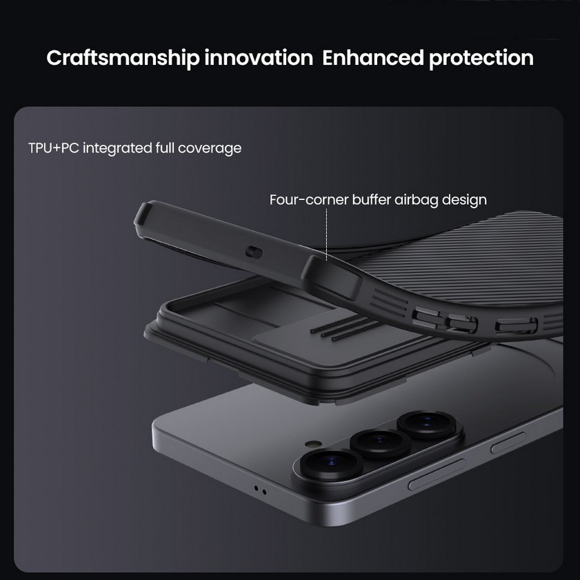 Telefontok Samsung Galaxy S26+ Plus - Nillkin csúsztatható kameravédős fekete hátlap tok