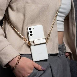 Telefontok: Univerzális - nyakba akasztó telefontartó fehér/arany lánccal
