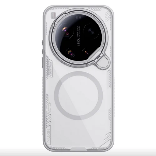 Telefontok Xiaomi 17 Ultra - Nillkin kameravédős áttetsző / világosszürke kitámasztós hátlap tok, beépített mágnessel