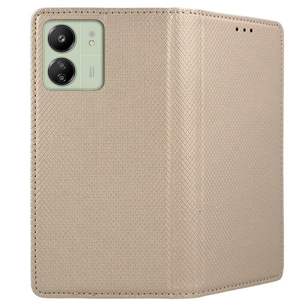 Xiaomi Poco C65 Telefontok - arany mágneses átlátszó szilikon keretes könyvtok
