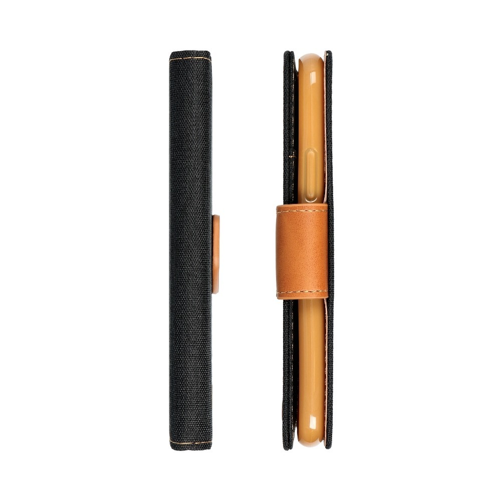Xiaomi Redmi 12C Telefontok - Canvas fekete mágneses szilikon keretes könyvtok