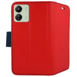 Xiaomi Redmi 13C Telefontok - Fancy piros/kék mágneses szilikon keretes könyvtok