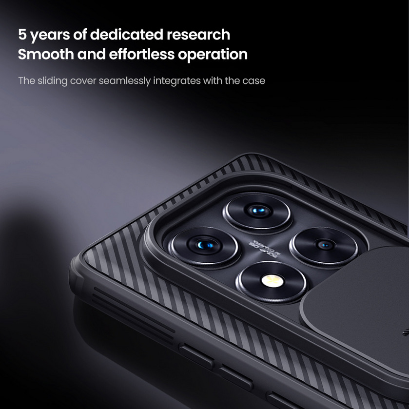 Telefontok Xiaomi Redmi Note 14 Pro+ 5G - Nillkin csúsztatható kameravédős fekete hátlap tok
