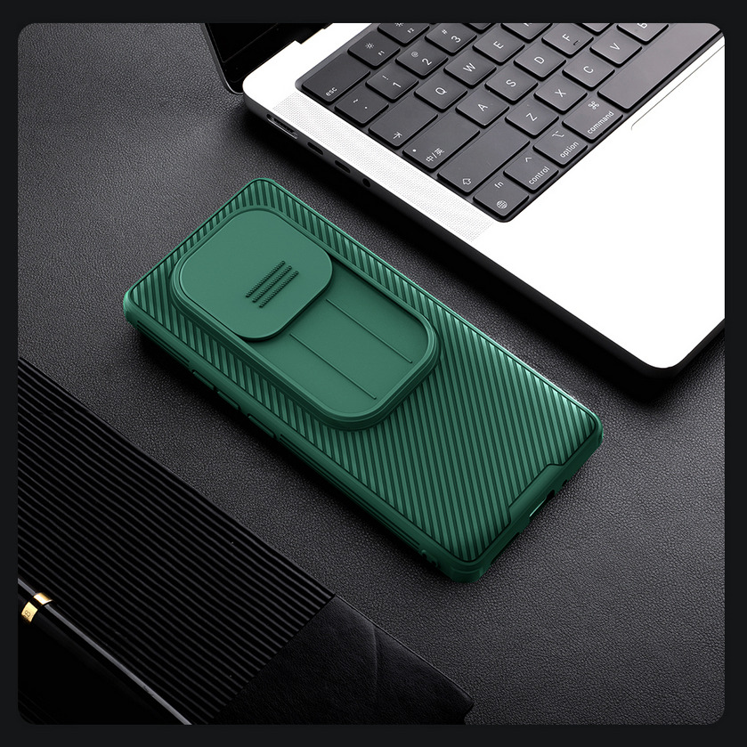 Telefontok Xiaomi Redmi Note 14 Pro 5G - Nillkin csúsztatható kameravédős zöld hátlap tok