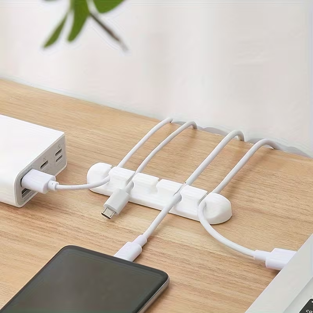 Univerzális 5 klipszes kábelrendező, fehér szilikon, ragasztható