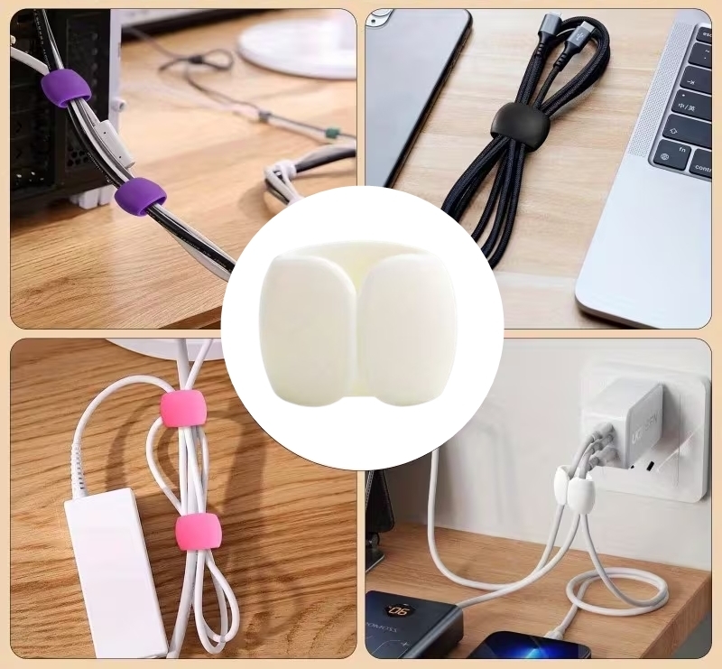 Ez az univerzális kábelrendező tökéletes megoldás mindazok számára, akik értékelik a rendet és a funkcionalitást. A rendező kb. 8 mm átmérőjű nyílással rendelkezik, amelyben különféle kábelek, például töltő-, vezetékes headset-, HDMI- vagy hálózati kábelek helyezhetők el. Egyszerű kábelkezelést tesz lehetővé egy kézzel. Az 5db  rendszerezőből álló készlet lehetővé teszi a kábelek hatékony kezelését a zsebben, az asztalon, az asztal sarkaiban vagy az autó műszerfalán. A karcsú kialakításnak köszönhetően a rendező könnyen beilleszthető szűk helyekre, a rögzítés pedig egyszerű és gyors.