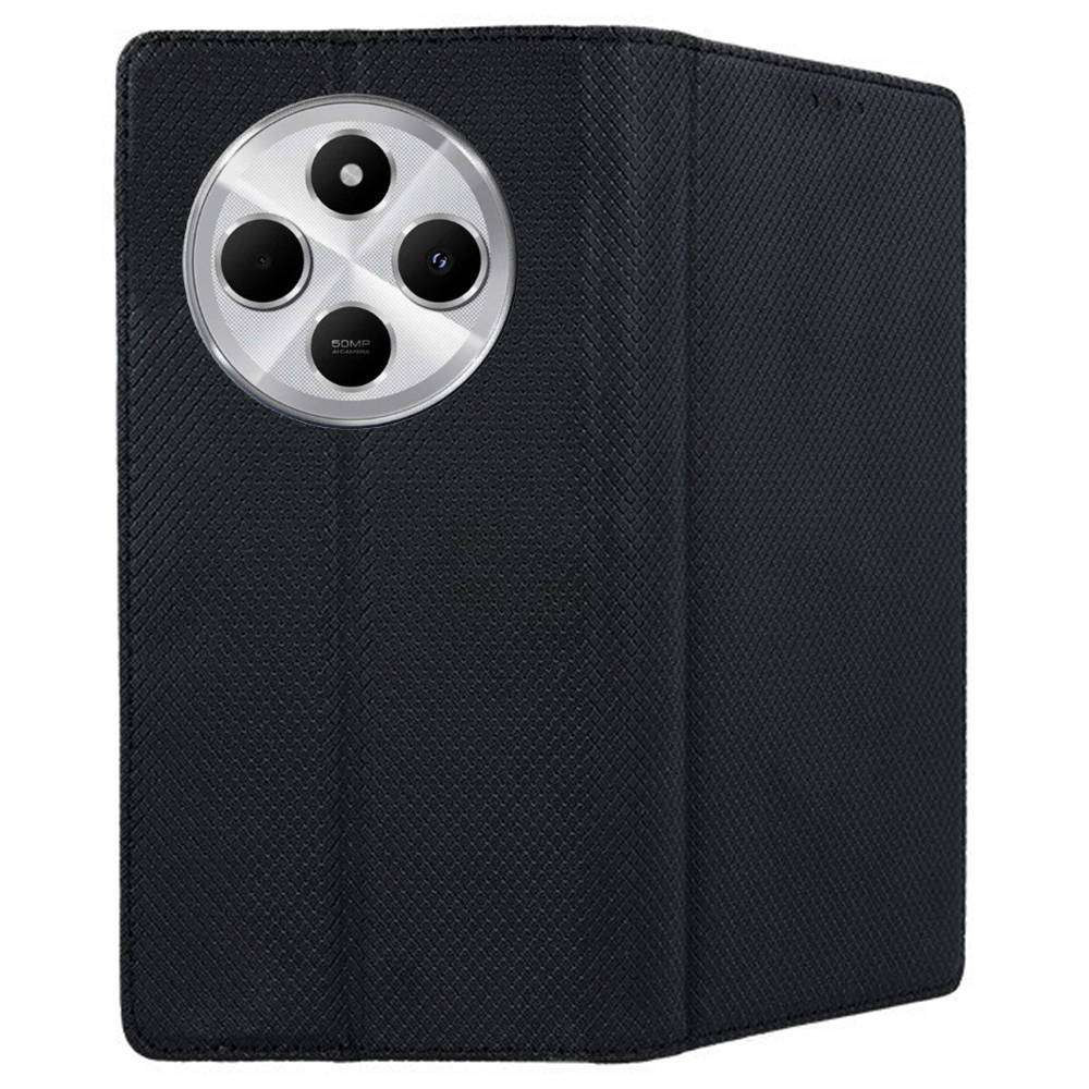 Xiaomi Redmi A4 5G telefontok - fekete mágneses átlátszó szilikon keretes könyvtok